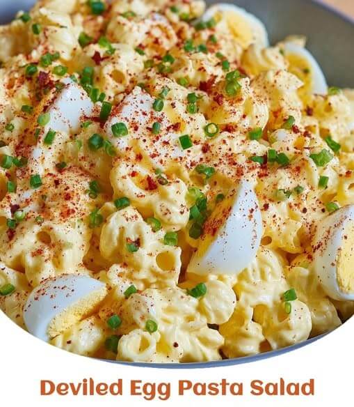 There’s something nostalgic about deviled eggs—maybe it’s the creamy yolks, the tangy mustard, or the hint of paprika dusted over the top. This pasta salad takes everything you love about that retro appetizer and turns it into a hearty, crowd-pleasing dish.